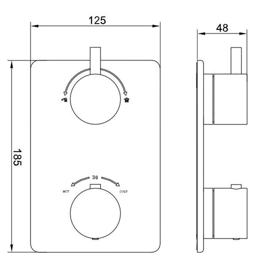 Caral afbouwdeel inbouwthermostaat 2 weg mat zwart