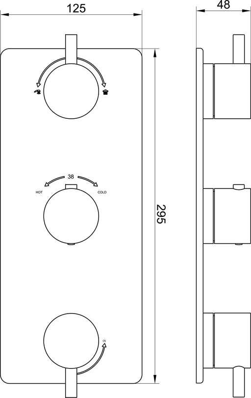 Caral afbouwdeel inbouwthermostaat 3 weg chroom